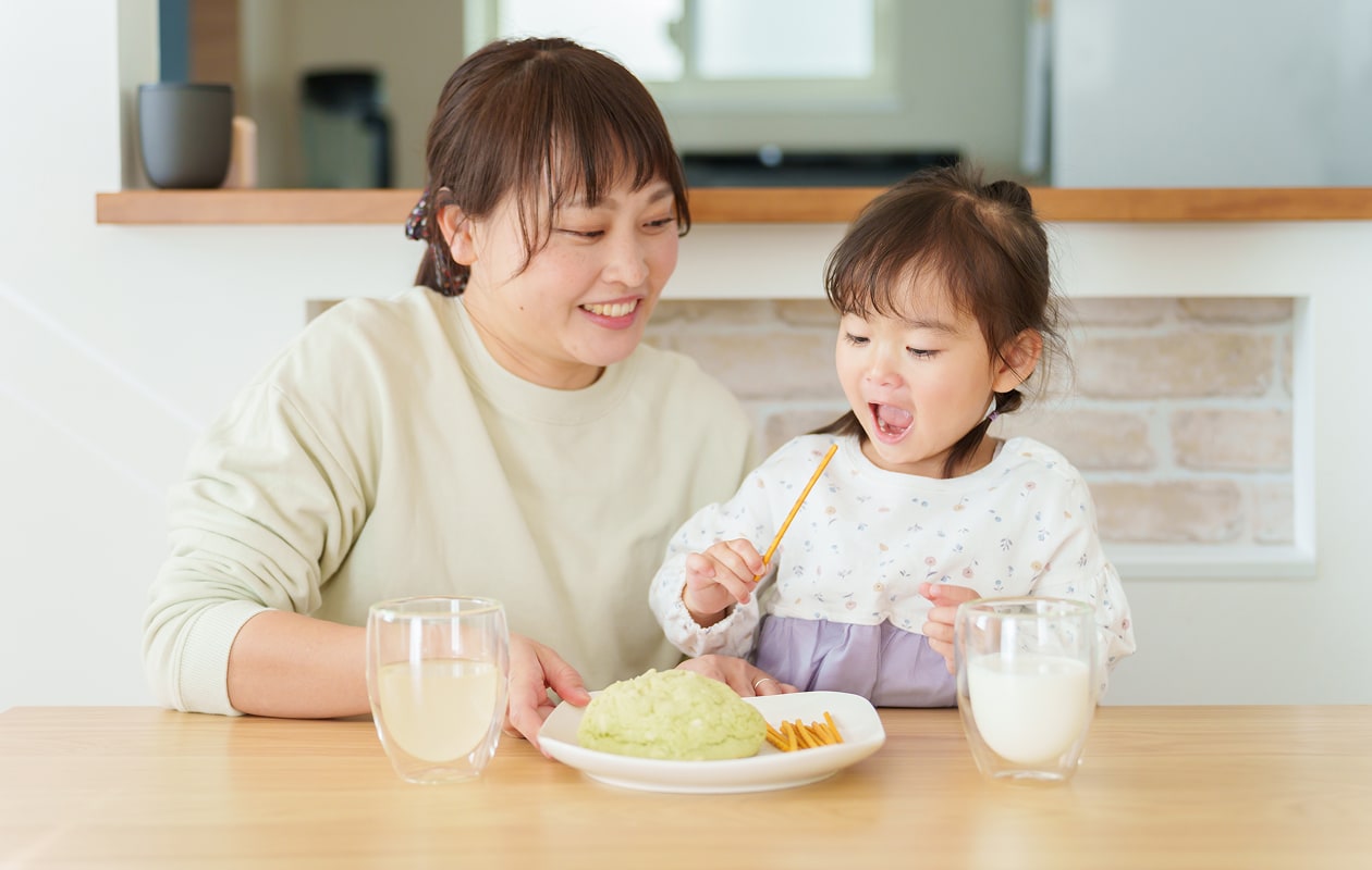 お子さまにおやつと一緒に与える飲み物は、水や麦茶が基本です。牛乳は栄養価が高く、カルシウムやタンパク質の補給にもなりますが、飲みすぎると食事に影響することがあるため適量を心がけましょう。
