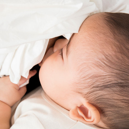 乳首に傷ができて直接飲ませることがつらいときは、授乳時間を短くする、さく乳した母乳を哺乳瓶で与えるなど、乳首を休ませることが大切です。乳首にクリームやオイルを塗って保護しておくこともよいでしょう。痛みの程度が軽い場合は、乳頭保護器で乳首をカバーしながら飲ませる方法もあります。