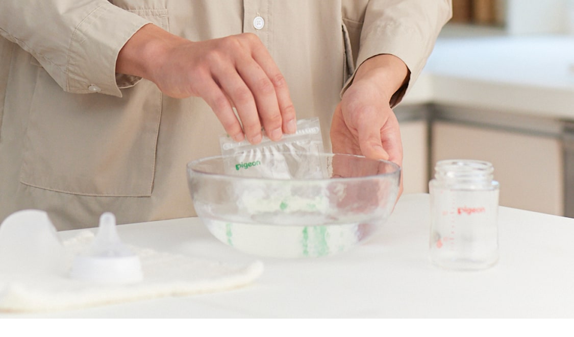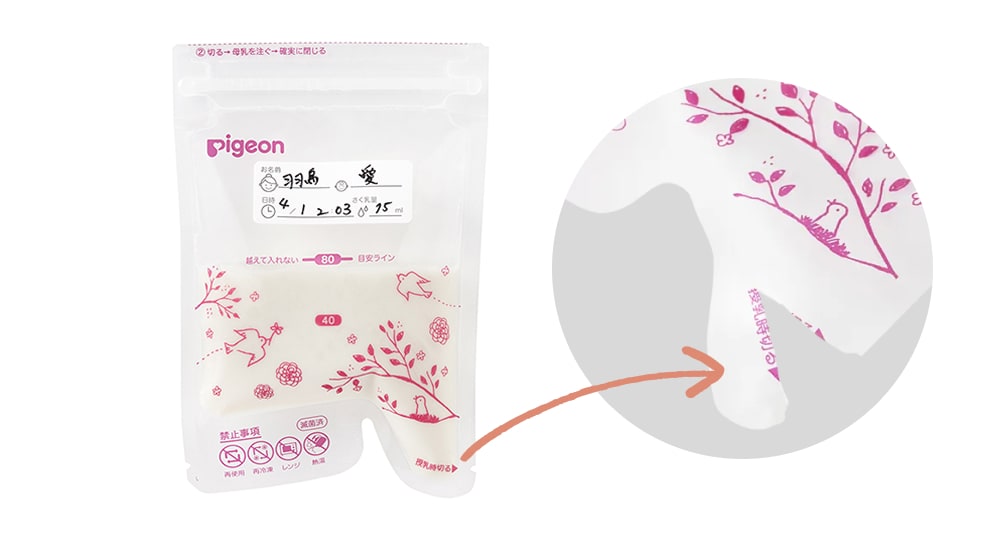 哺乳びんへ注ぐ時は、パック右下の「注ぎ口」部分をカット。切り取りやすく、こぼしにくい形状です。