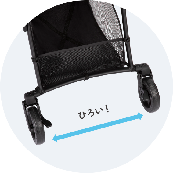 赤ちゃんに伝わる振動を軽減足元スッキリ幅広設計