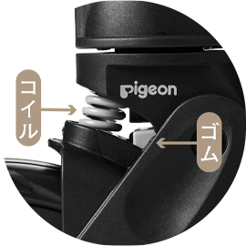 コイルとゴムの2つのサスペンションで、振動と衝撃を吸収。軽い力で、曲がれます。